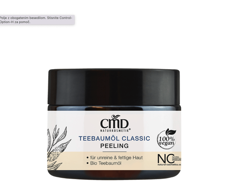 Ekološko olje čajevca pomaga preprečevati vnetja in čisti nečistoče kože, medtem ko naravne mineralne sestavinepodpirajo regeneracijo kože.